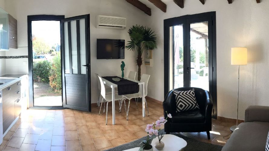 These are mini villas entirely on one level, or which can have a bedroom on the first floor, of 60 m² which can accommodate from 4 to 6 people, with sea view, 3-room type (2 bedrooms), fully equipped. modernly equipped and furnished, air-conditioned, WiFi included, with a beautiful terrace opening onto the sea and equipped with a built-in BBQ for successful summer evenings. Our F3 standing are all located between 400 m and 900 m from the beach.