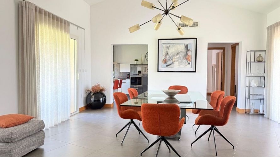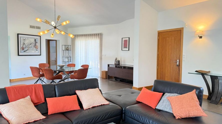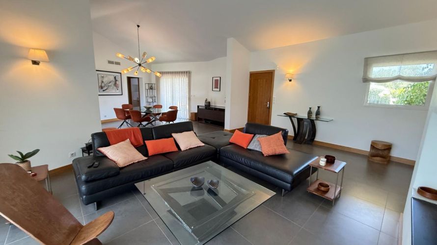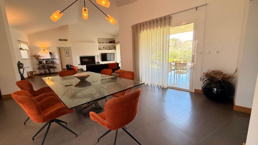 The villa has a large living room of 70 M² with dining area, fireplace and access to a covered outdoor terrace. It also gives access to the kitchen which is separate but which remains open to the living room.