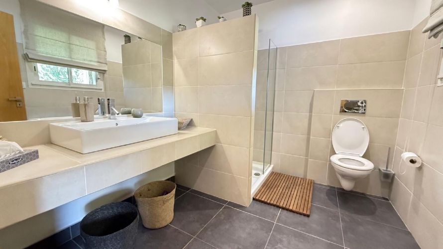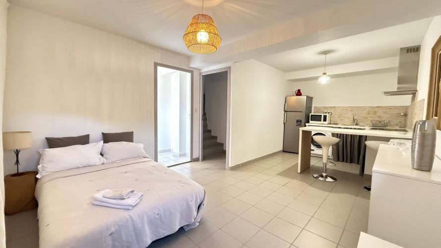 The villa is made up of 4 suites including all TV, bathroom and WC, one of which is a real adjoining F2 type apartment fully furnished with kitchen, bedroom/bathroom and lounge area.